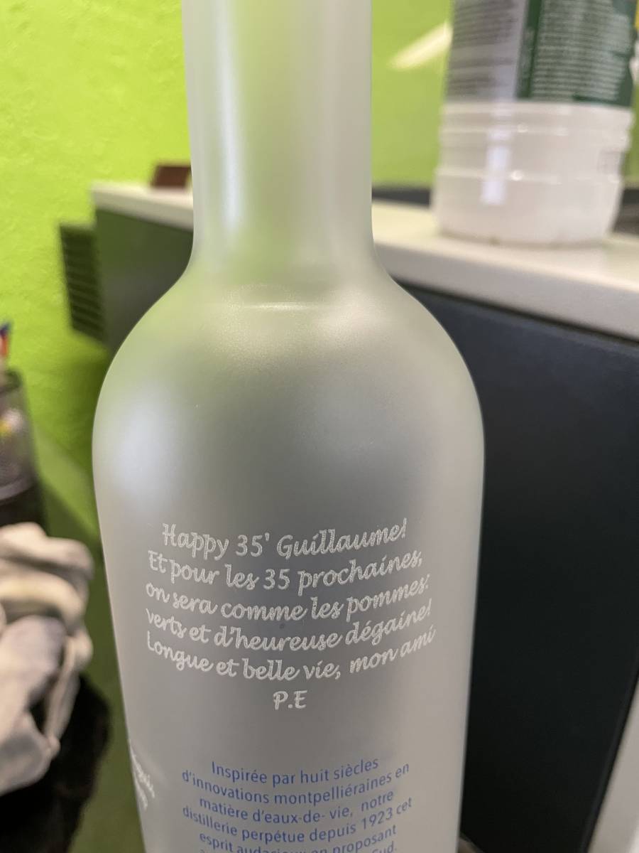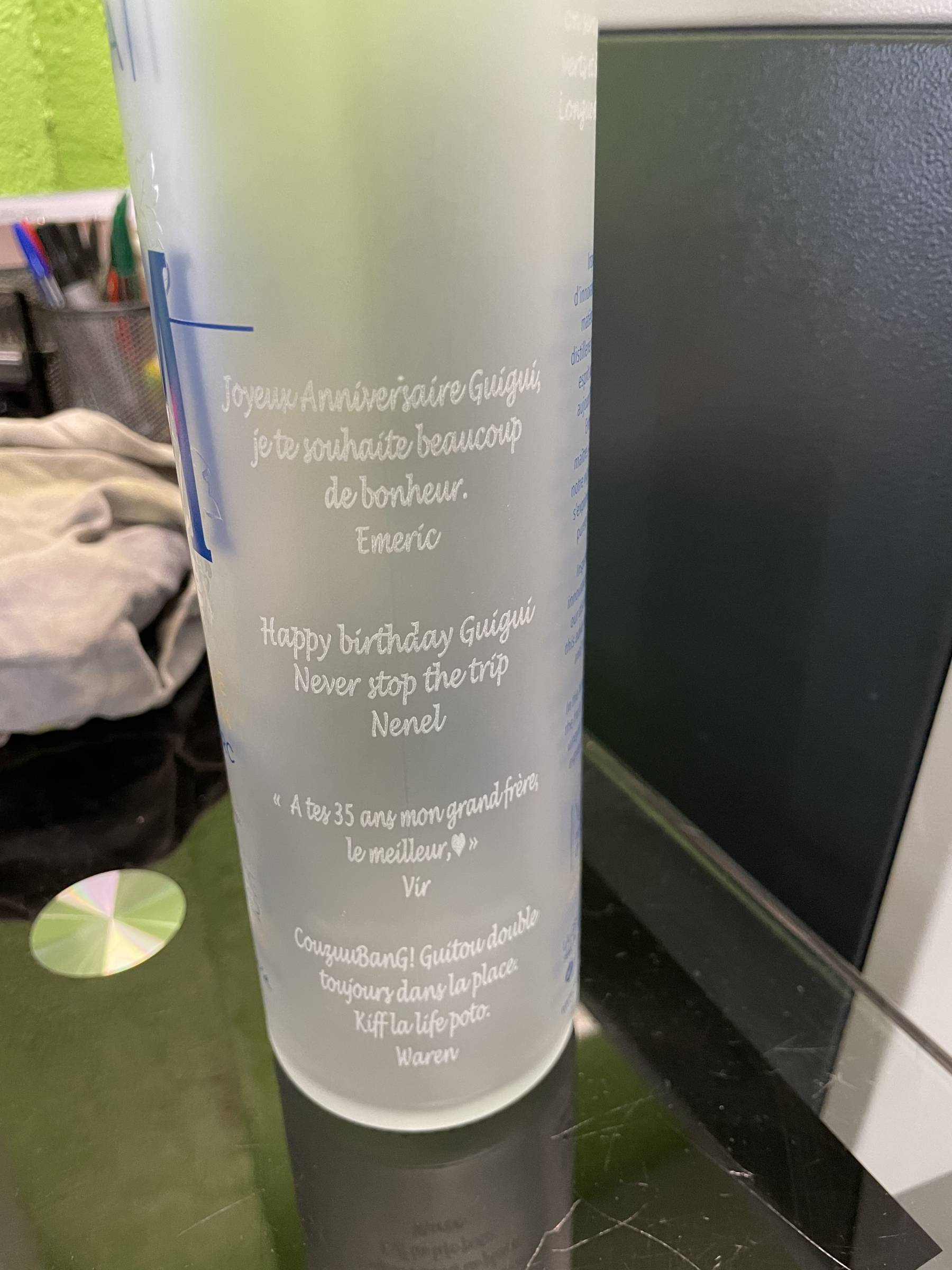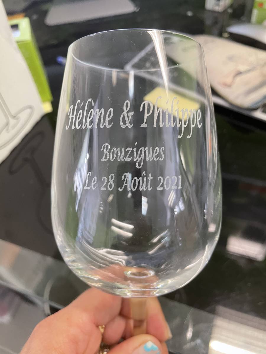 Vous souhaitez offrir un cadeau personnalisé pour une occasion comme un mariage, un anniversaire ou tout simplement pour le plaisir. Idéale pour marquer le nom de vos convives à table. Idéal pour vos fêtes en famille ou entre amis, apportez une touche originale à votre table. Nous pouvons personnaliser vos verres avec un prénom, un logo ou tout ce que vous souhaitez. Pour vous restaurateur, nous pouvons graver votre logo également. Nous disposons d'une machine laser et d'un tourne cylindre qui permet d'obtenir une gravure de qualité linéaire. gravure possible sur n'importe quel verre, mais également sur vos bouteilles.
